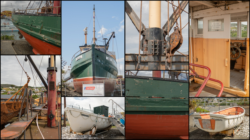 This photo pack contains 172 high-res reference pictures of an old commercial oyster fishing boat, from Bluff, New Zealand, plus photos of a small lifeboat.